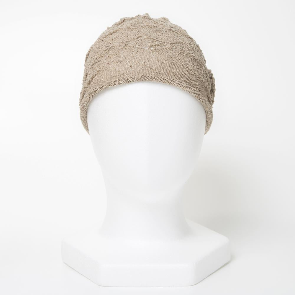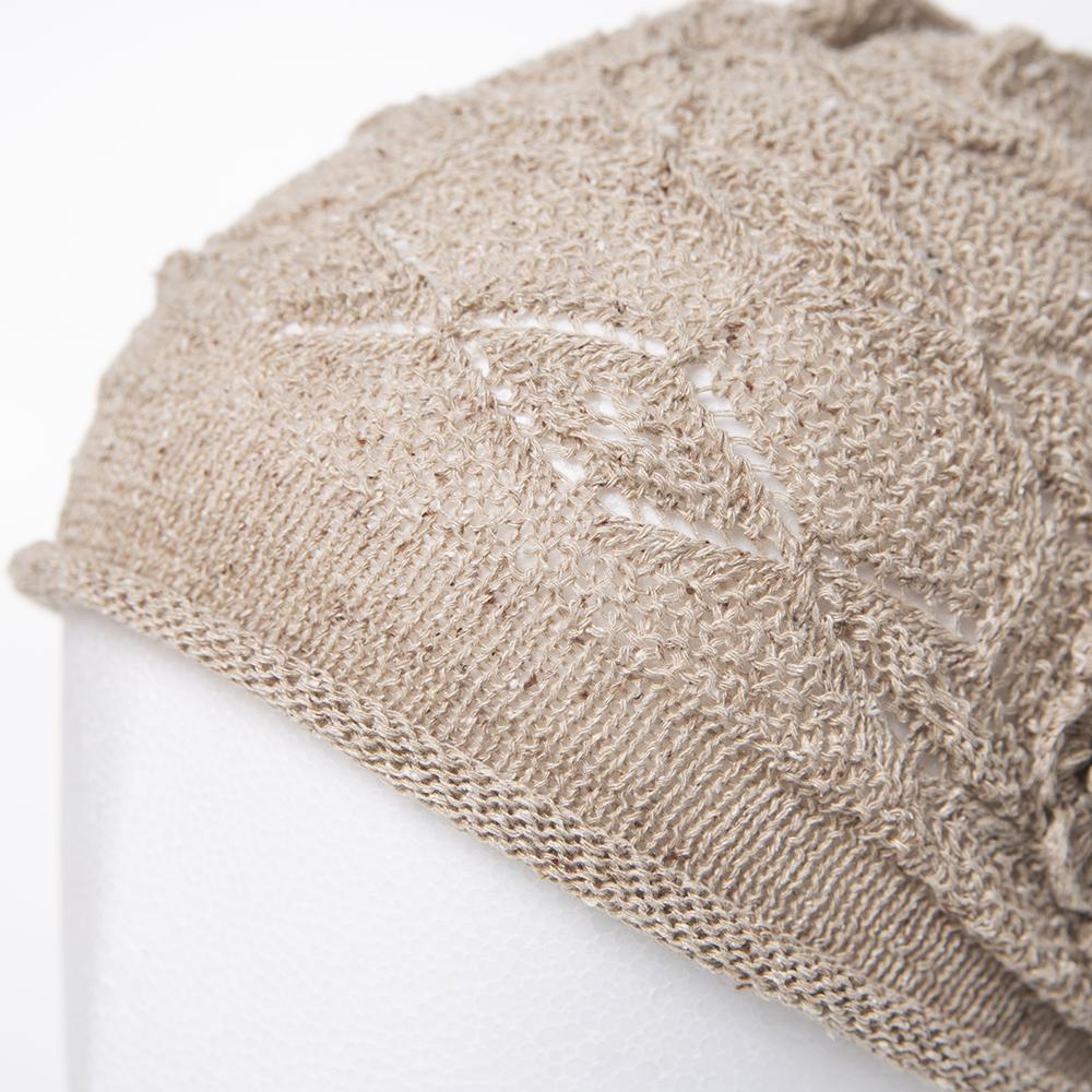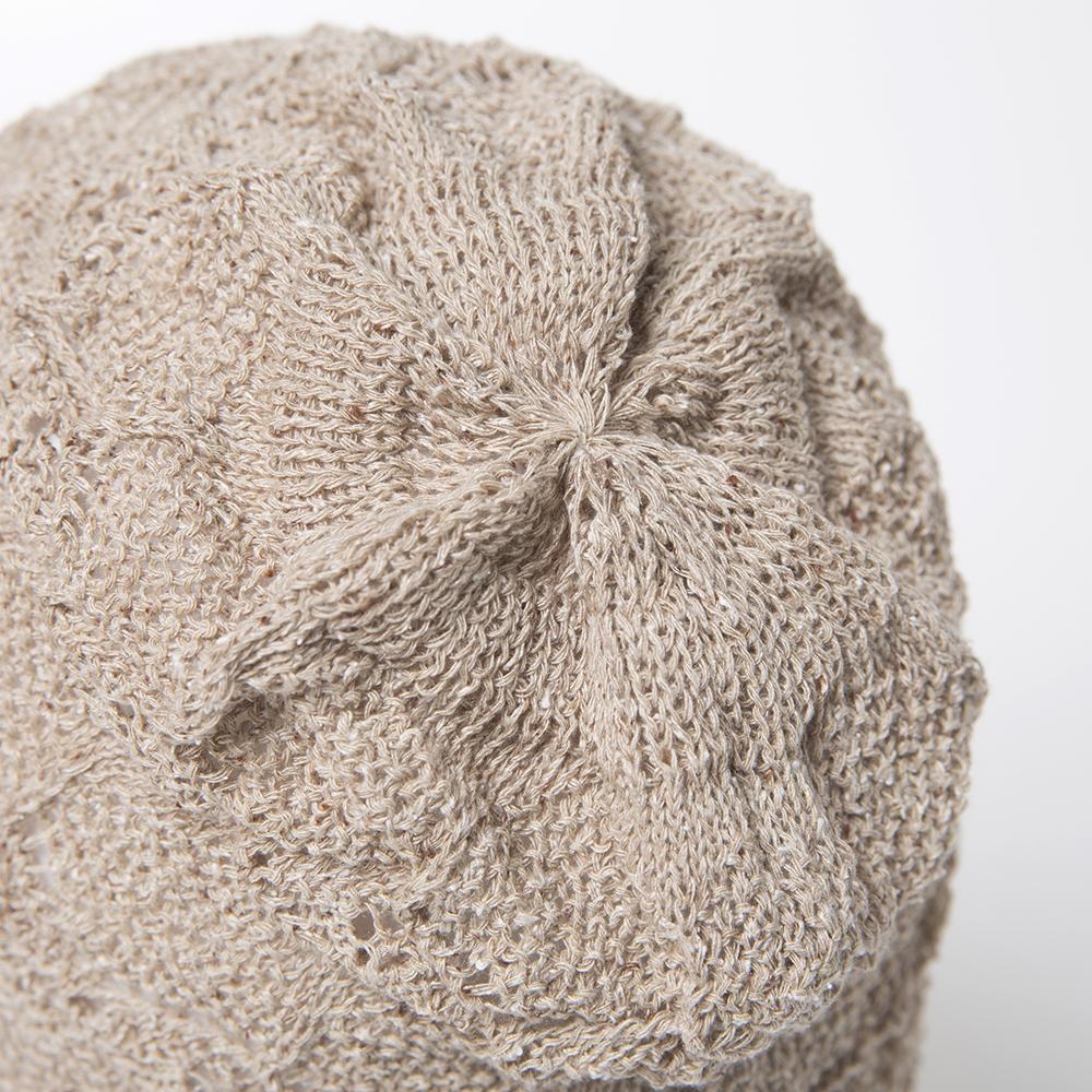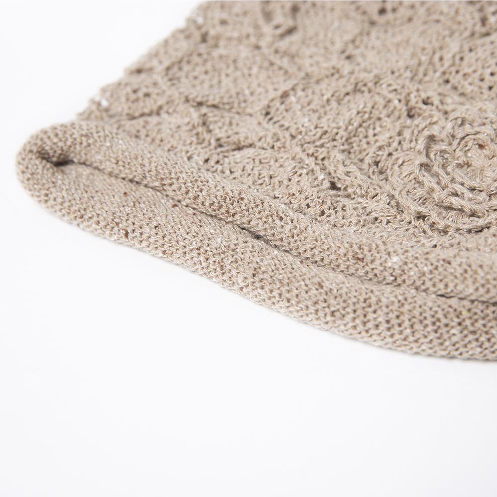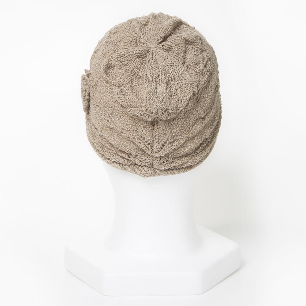 シルク100%の肌触りの良いニット帽です。良く伸びる被り口で締め付けがなく、透かし編みのためムレにくく快適です。さりげなく付いたお花が可愛いアクセントに!◎手洗いも可能なので、いつでも清潔に保って頂けます。◎軽量で柔らかい生地を使用しているため、小さく折り畳めて持ち運びにも便利なアイテムです。