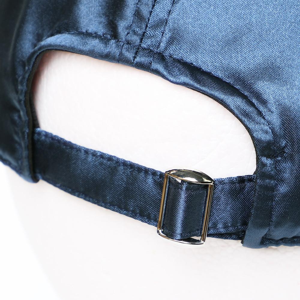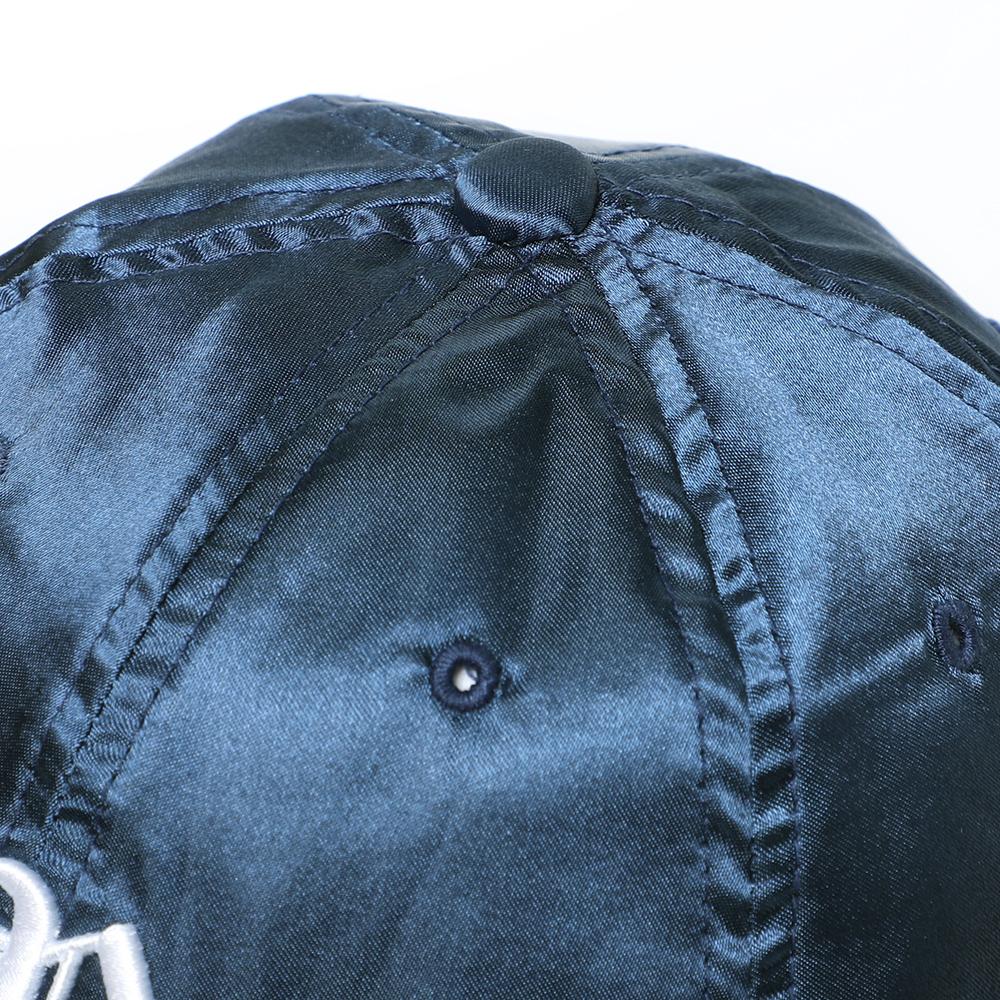 艶やかで滑らかなサテン生地を使用したトレンドキャップ。サテン素材とゴシックなフロントロゴがイカした雰囲気に。