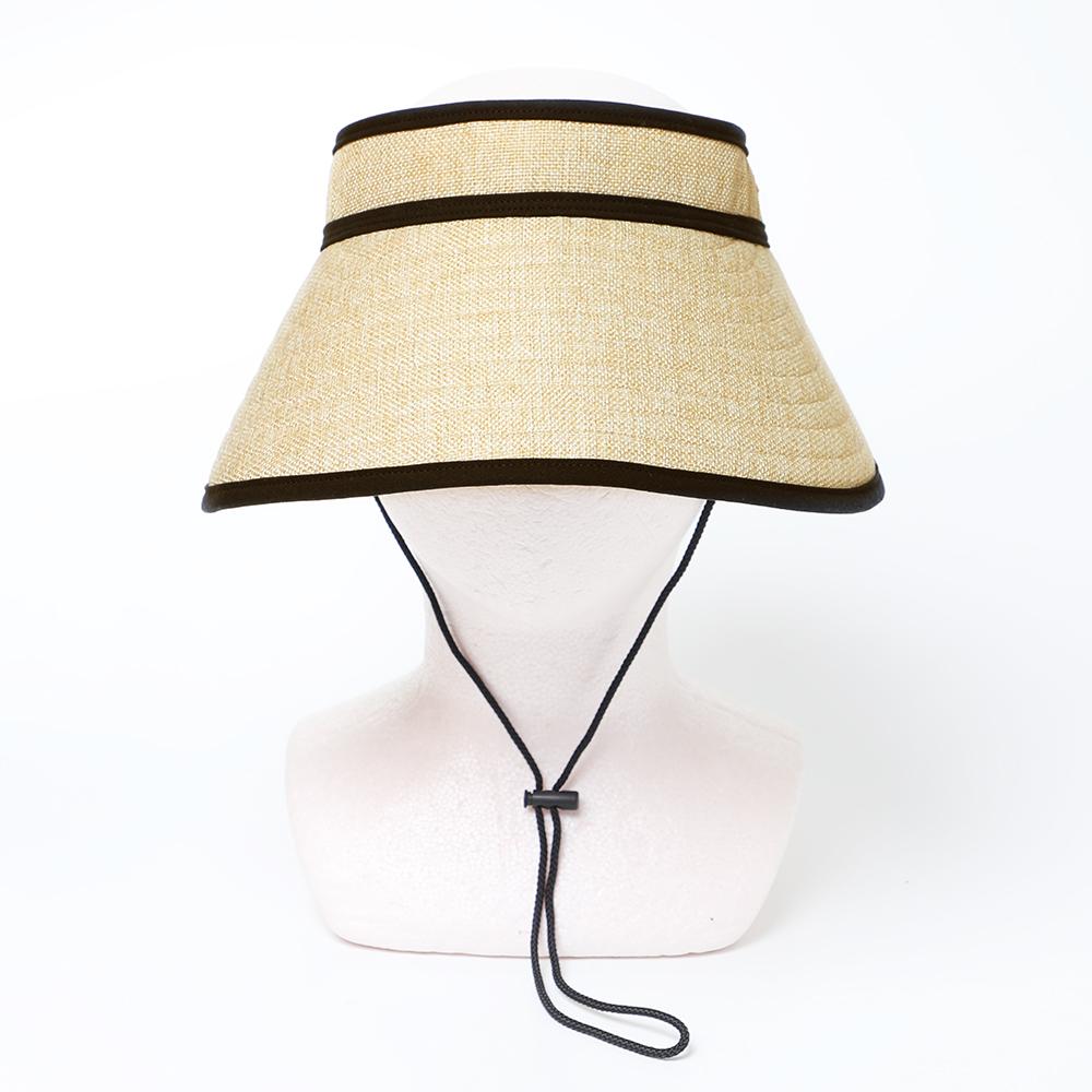 日差しが強くなる季節に必ず持っておきたいお洒落サンバイザーです。持ち運びの時にはくるくると丸めて小さく出来ますので、とても便利です。自転車などでも飛びにくいあご紐付きが嬉しいポイントです。◎手洗いも可能なので、いつでも清潔に保って頂けます。◎後ろのマジックテープでサイズ調節可能なので、ご自身のサイズ感に合わせて頂けます。