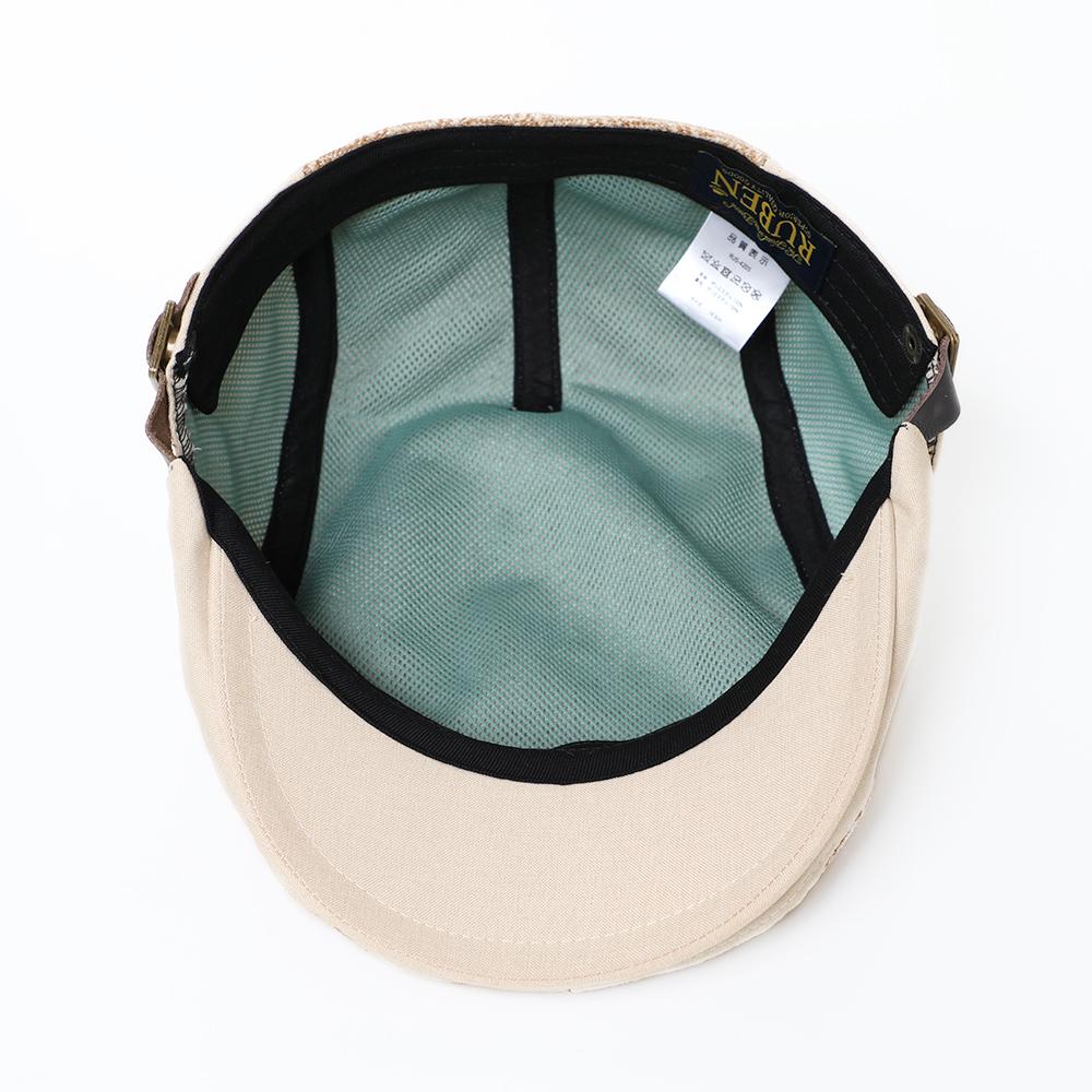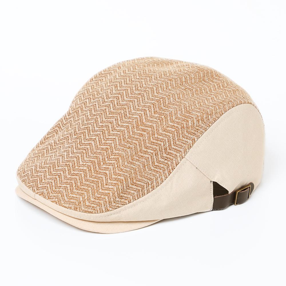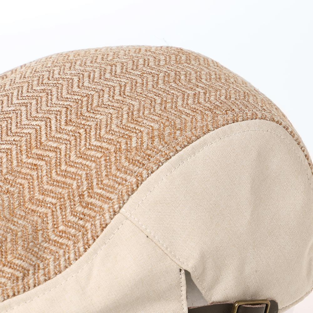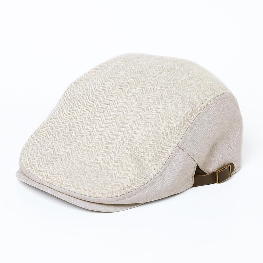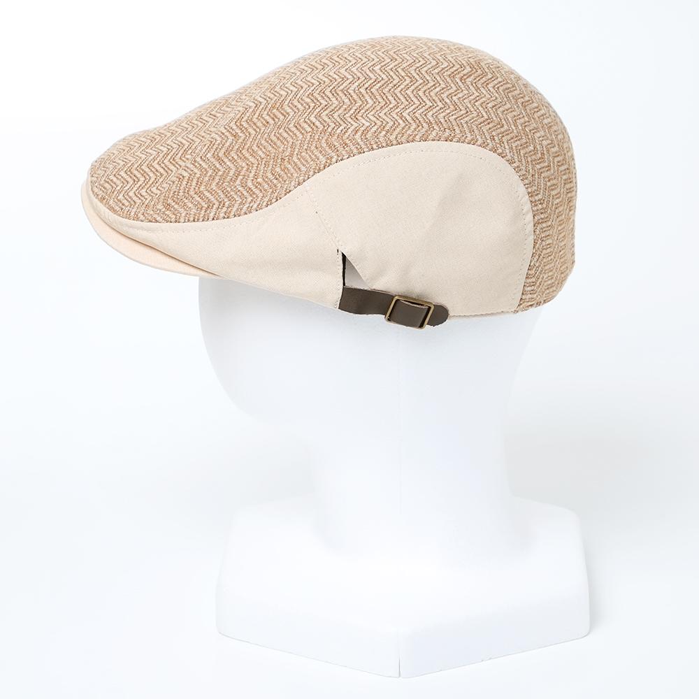 ヘリンボーン柄がおしゃれな春夏ハンチングです。シックな色使いでシンプルながらもトップのヘリンボーン柄がアクセントになっており、かぶるだけでおしゃれ度がアップします。裏地がメッシュなので熱がこもりにくく快適に被っていただけます。◎両サイドのベルトでサイズ調節可能なので、ご自身のサイズ感に合わせて頂けます。
