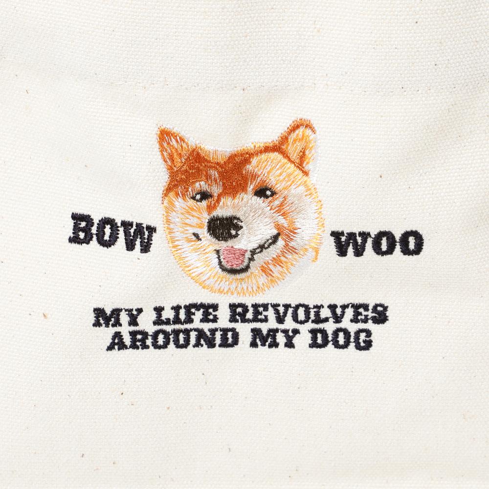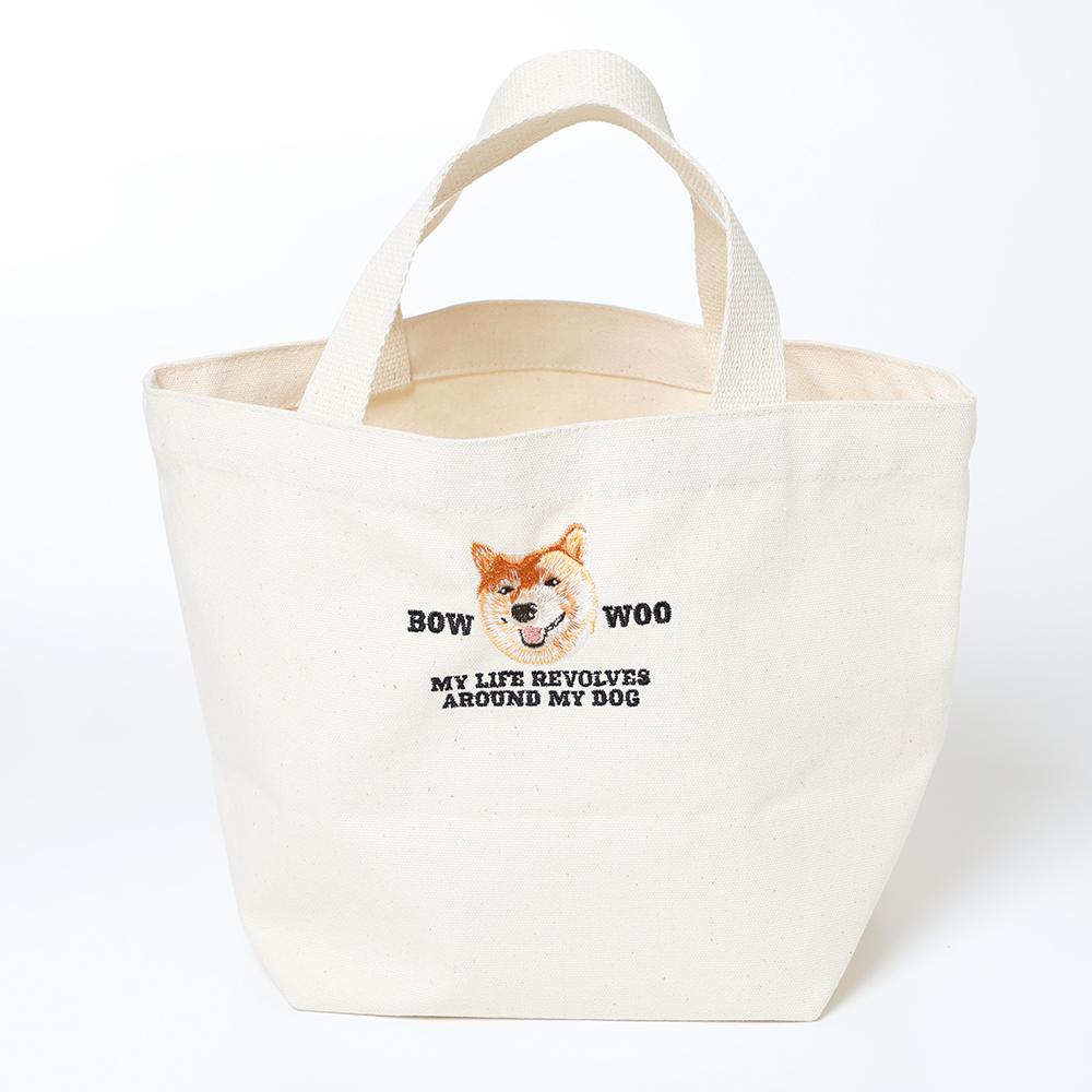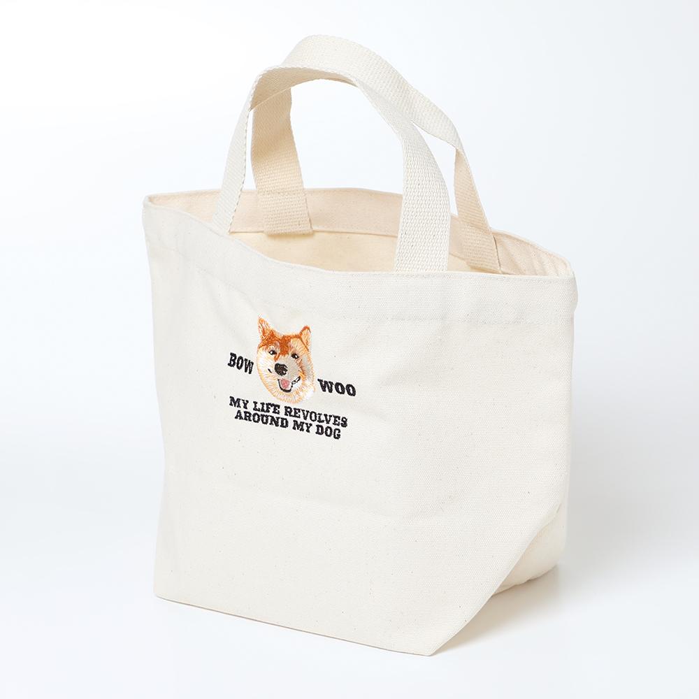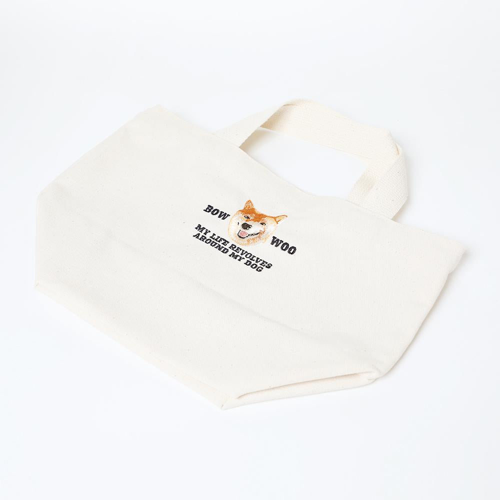 リアルな刺繍の柴犬が目を惹くコットンエコバッグです。おでかけする時にさっと持ち運びやすいサイズ感で、サブバッグとしても活躍します。