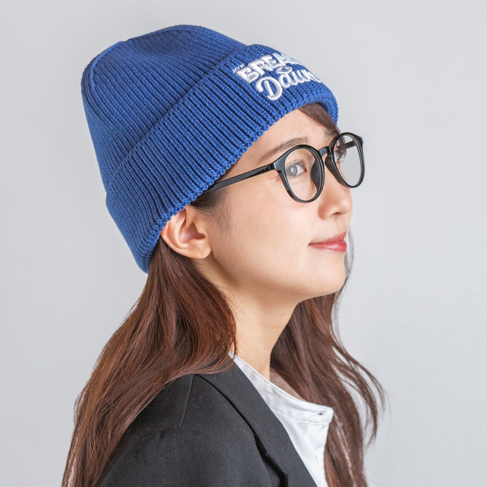 それぞれカラーの異なる刺繍糸がかわいいリブ編みニット帽です。