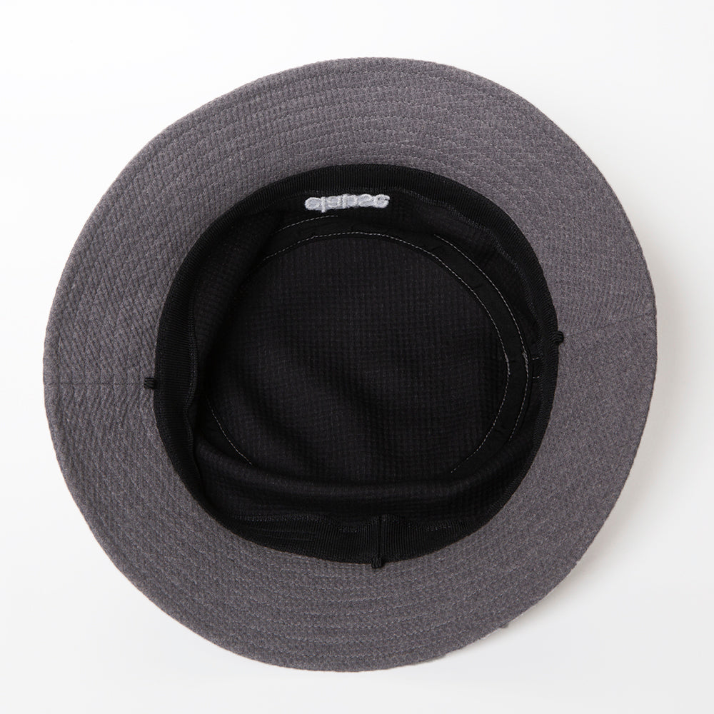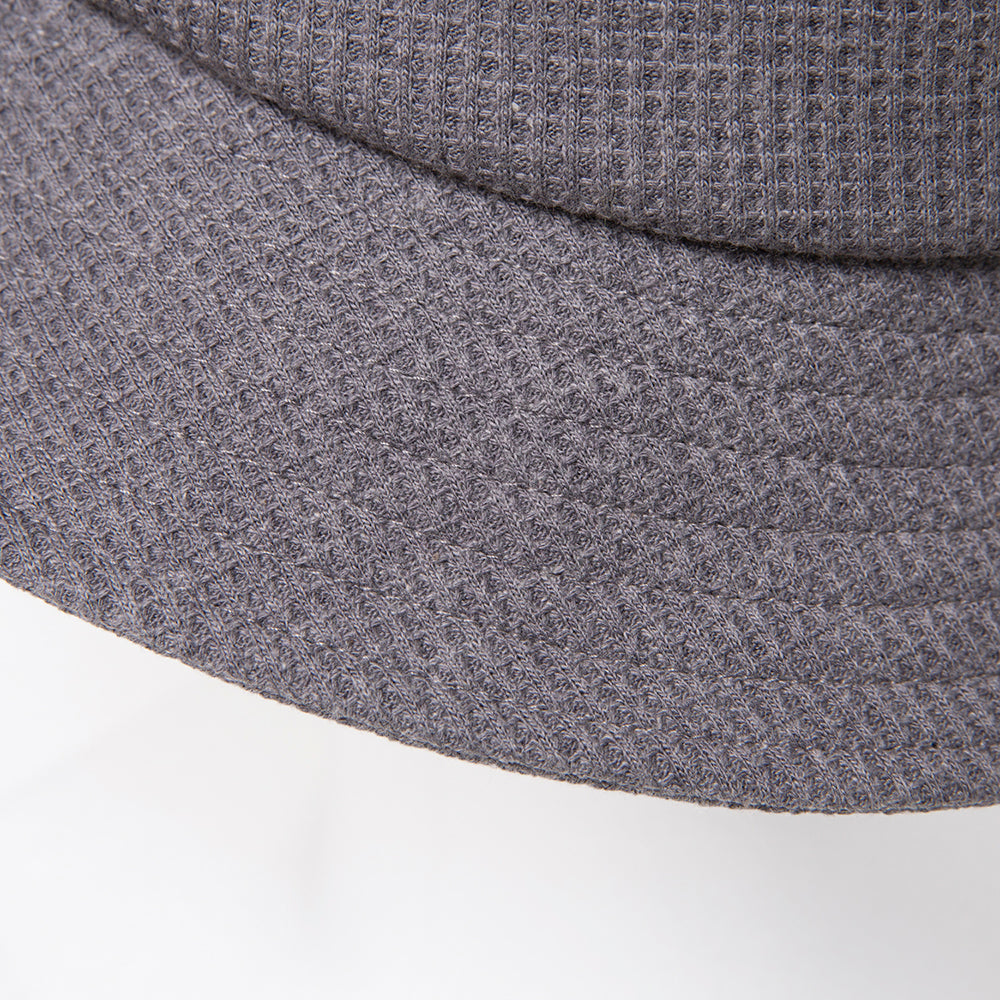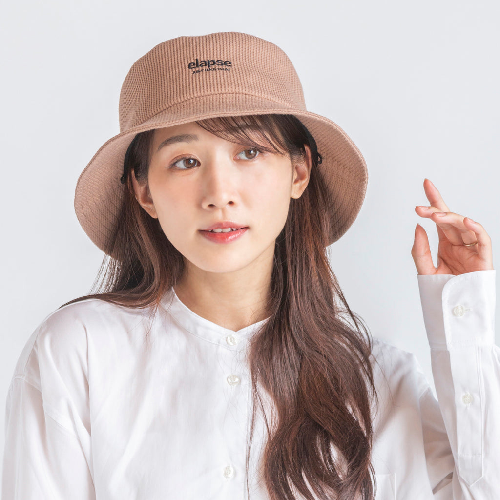 柔らかいコットン混のワッフル素材を使用したバケットハットです。とても柔らかい素材を使用しているので、くるくると丸めてコンパクトに持ち運びが可能です。シンプルなワンカラーのデザインで色々なスタイルに合わせやすく、季節を問わず長い間使えるアイテムです!内側にあるすべりの裏側には、サイズを調節して頂けるテープが付いていますので ご自分のサイズ感で被って頂けます。