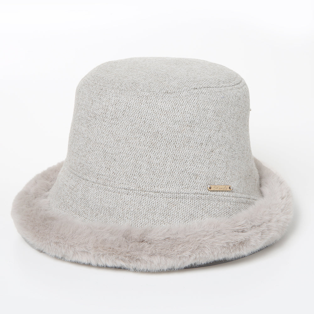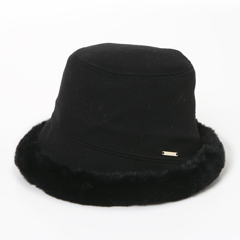切り替えデザインのクロッシェハットです。きれいなシルエットとファーが顔周りを華やかに!程よいボリューム感が頭を包み込み寒い日のお出かけにも◎内側にあるすべりの裏側にはサイズを調節して頂けるテープが付いていますので、ご自分のサイズ感で被って頂けます。