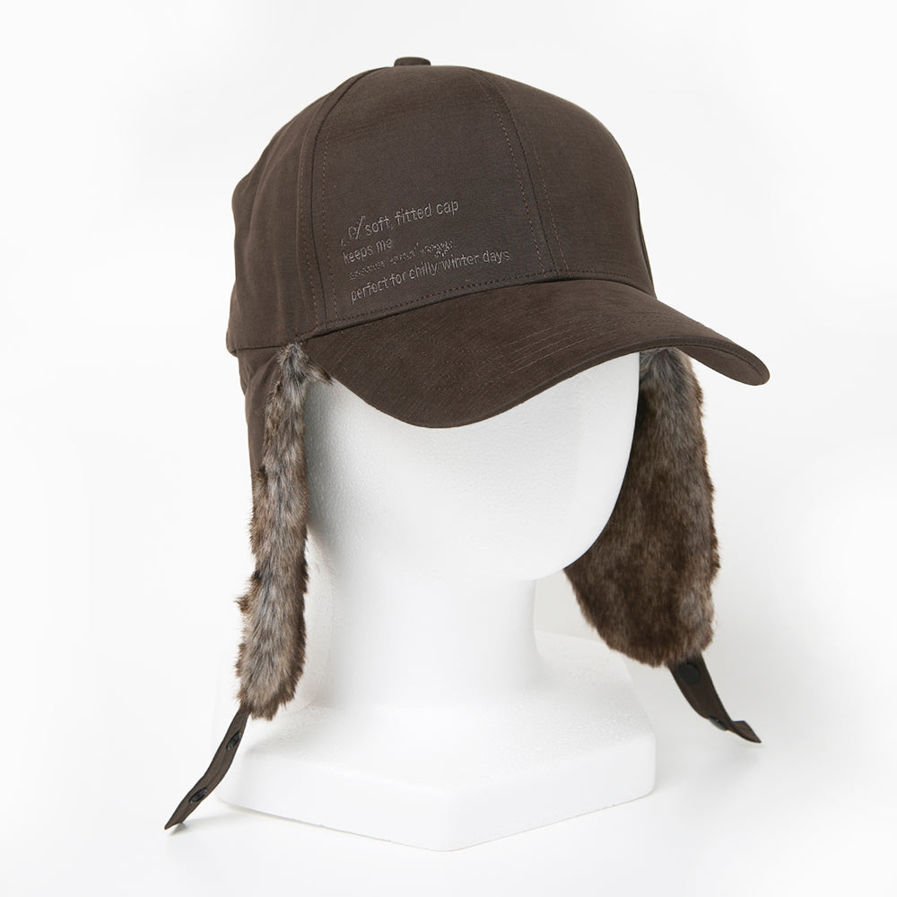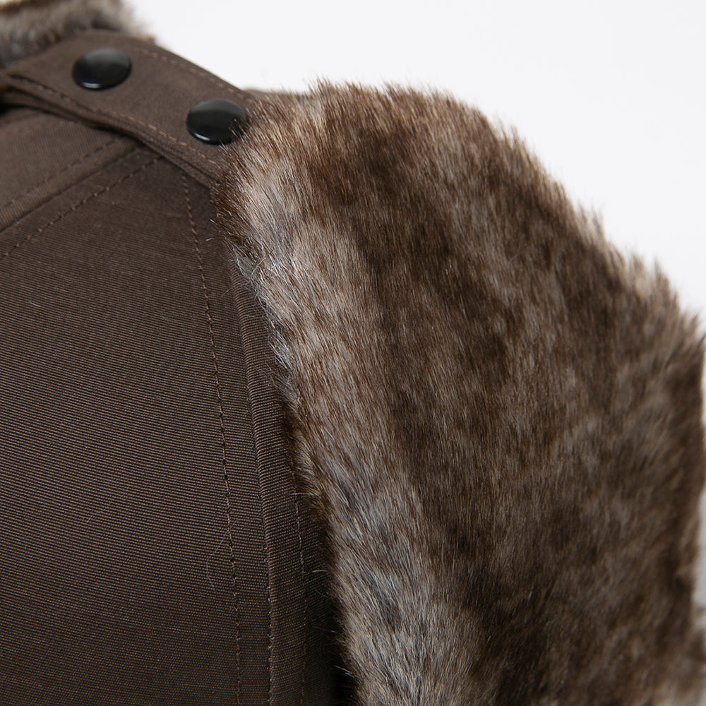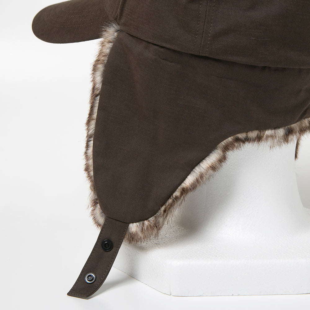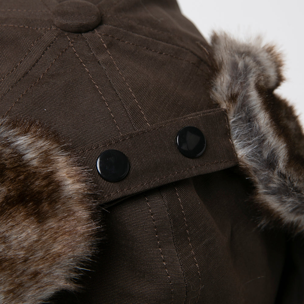 フェイクファーを使ったパイロットキャップ風の耳あて付きキャップです。落ち着いた色合いでとても合わせやすく、一点投入でおしゃれ上級者なコーデが完成します。保温性にも優れていますので、冬のアウトドアやキャンプにもおすすめ!内側にあるすべりの裏側には、サイズを調節して頂けるテープが付いていますのでご自分のサイズ感で被って頂けます。