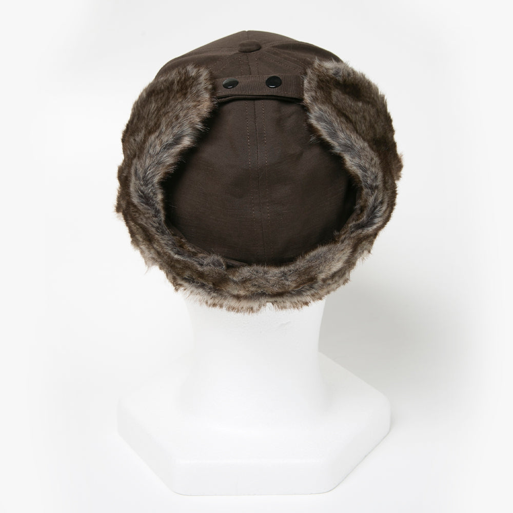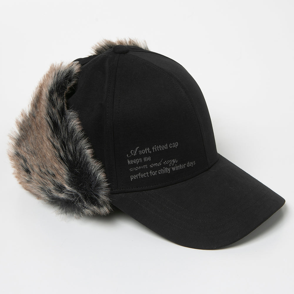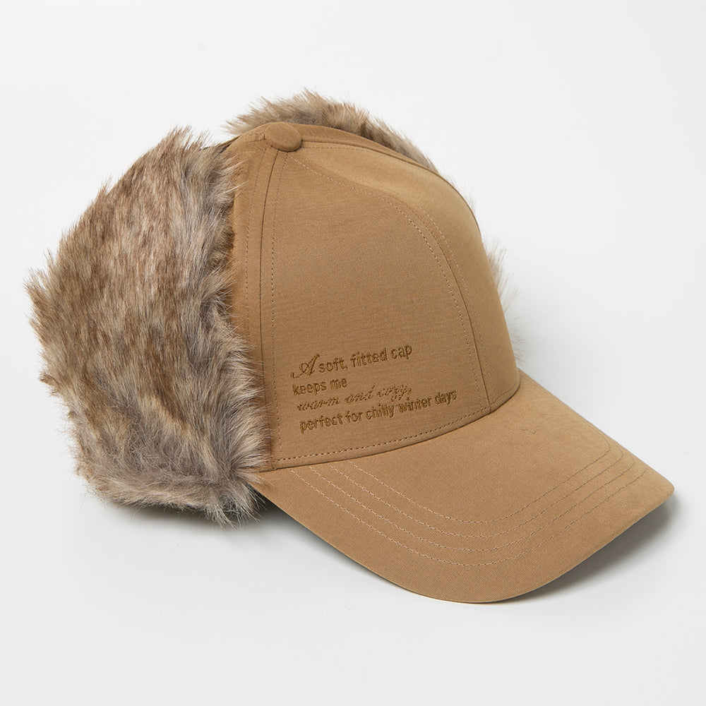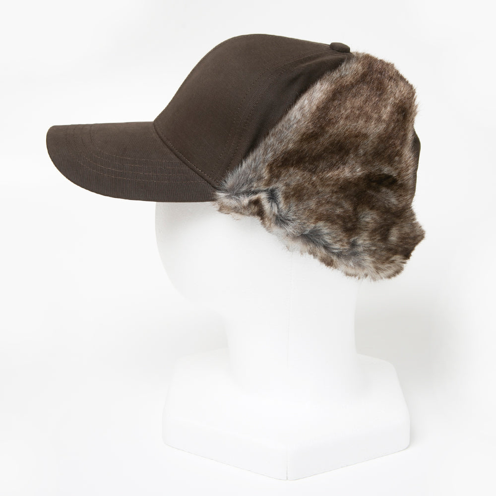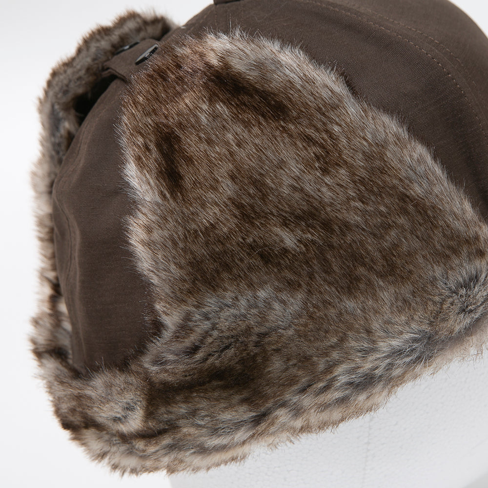 フェイクファーを使ったパイロットキャップ風の耳あて付きキャップです。落ち着いた色合いでとても合わせやすく、一点投入でおしゃれ上級者なコーデが完成します。保温性にも優れていますので、冬のアウトドアやキャンプにもおすすめ!内側にあるすべりの裏側には、サイズを調節して頂けるテープが付いていますのでご自分のサイズ感で被って頂けます。