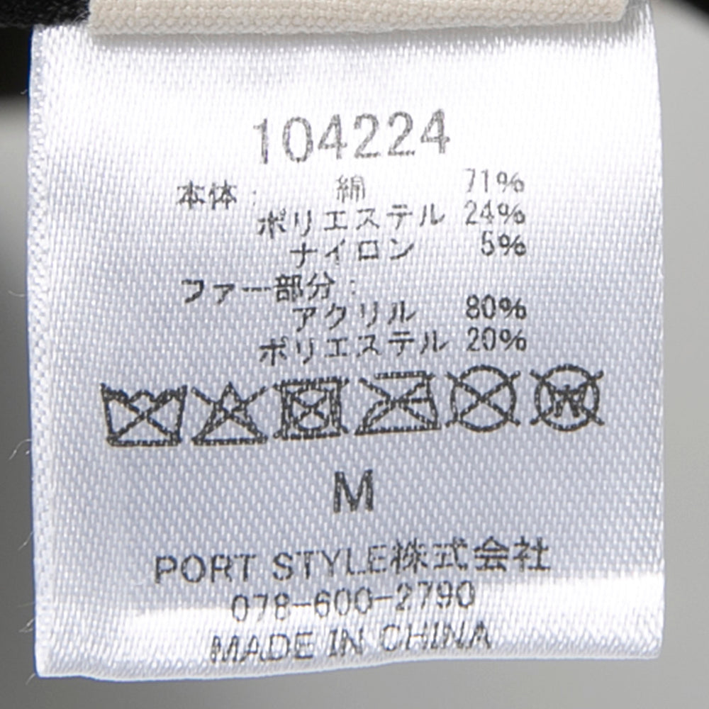 | 素材 | (本体)綿71% ポリエステル24% ナイロン5% (ファー部分)アクリル80% ポリエステル20% |