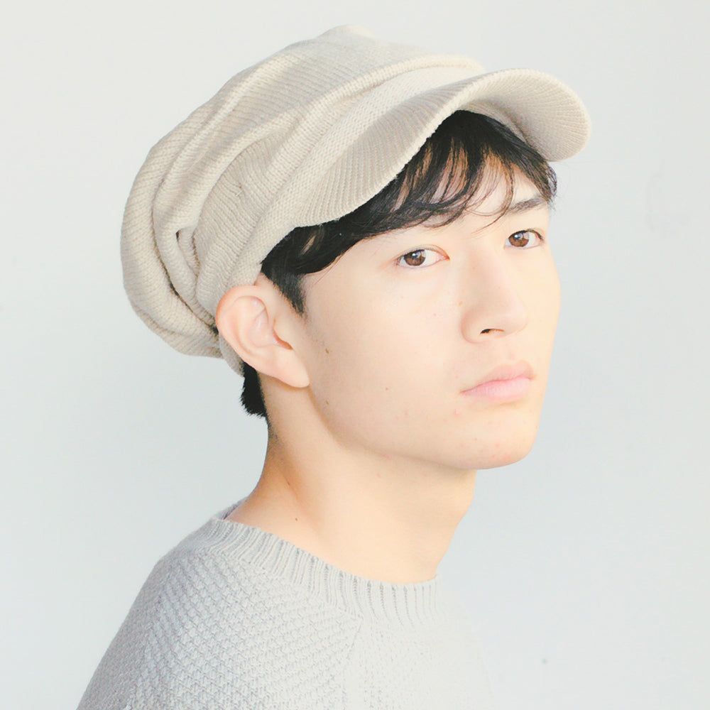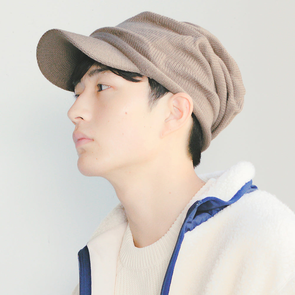 アクリル100%のニット素材で、真冬でも暖かさ抜群!ゴルフやスノボーなど、冬の屋外での活動にかなりオススメな帽子です。ポイントはこのつまんだようなくしゅくしゅデザイン。伸縮性が抜群で、ゆったりとかぶることができ、ボリュームのあるシルエットで小顔効果も大!他のニットキャスケットと比べて、つばも少し長めなので、小顔効果に+α。深さもしっかりあり、頭の大きさでお悩みの方にもオススメ。帽子の後ろを重ね縫いしてあるので、かぶった時のシルエットがとてもキレイなのも注目です。