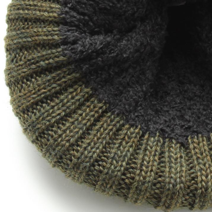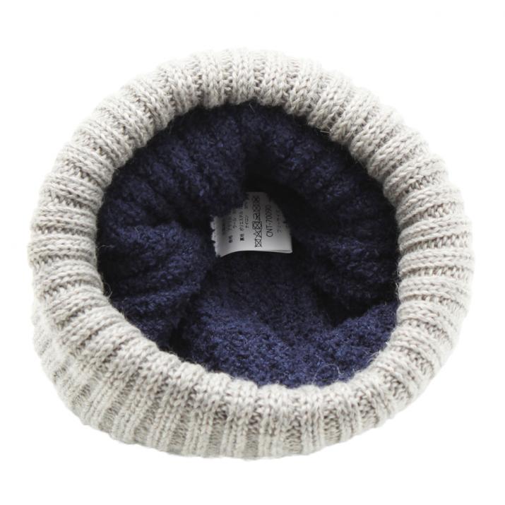 ウール混のニット編み&裏ボア仕様で保温性抜群のカジュアルニット帽。ミックス糸を使用した、シンプルなニュアンスカラーがなんとも絶妙。サイドの革タグがワンポイントになった、カジュアルなアイテムです。