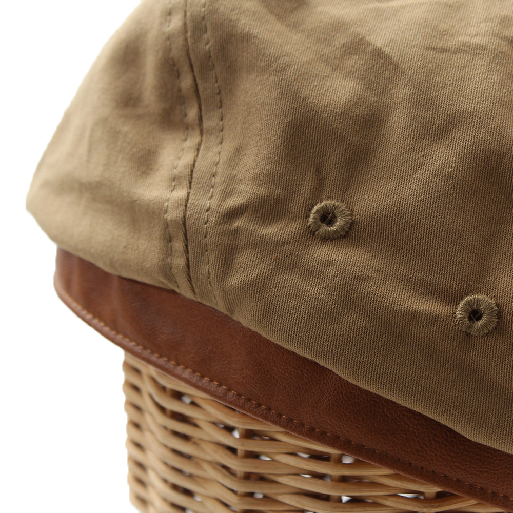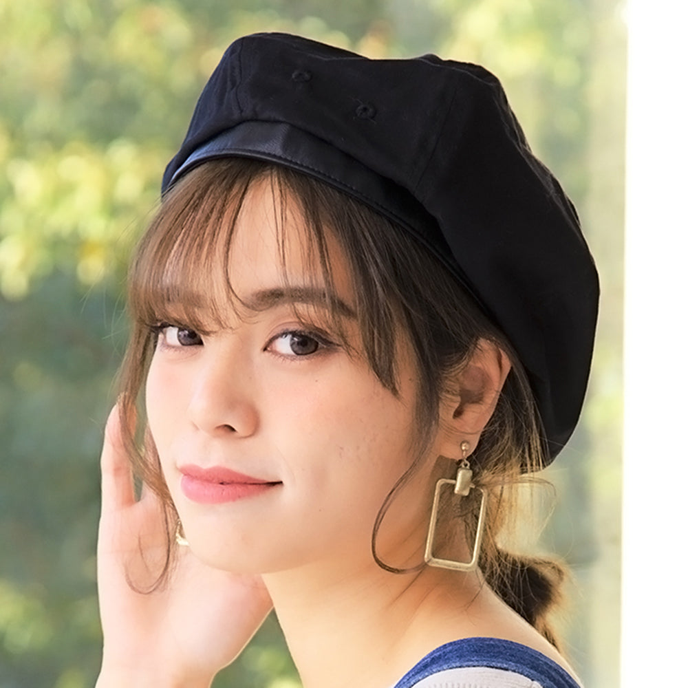 シンプルなPU素材で被りやすい。被り口部分にはフェイクレザーを使用していますので、あえて見せて被るとコーデが引き締まるアクセントになります。